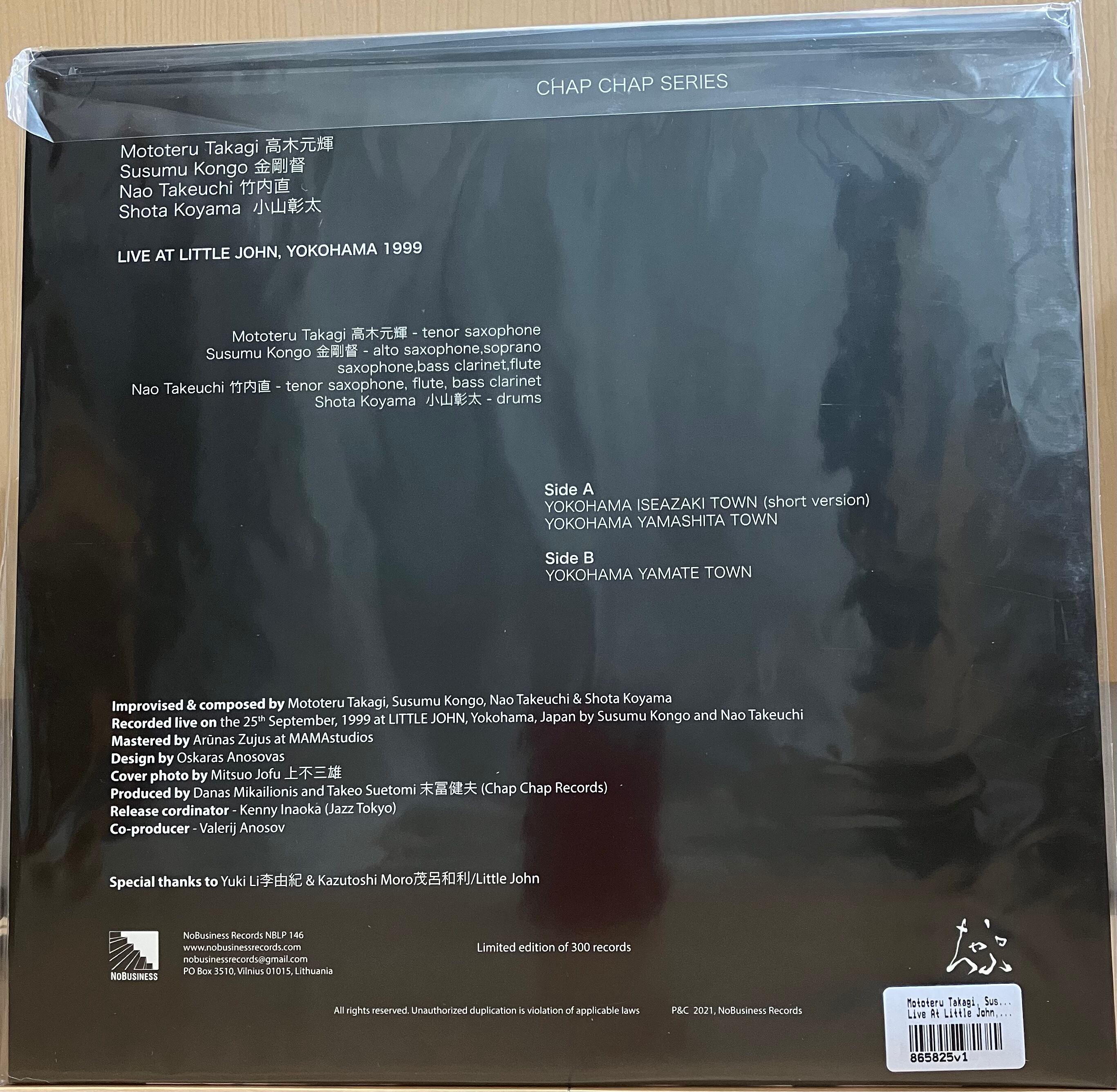 【Sold Out】【新品デッドストック】【300枚限定プレス LP】 Mototeru Takagi, Susumu Kongo, Nao Takeuchi, Shota Koyama / Live At Little John, Yokohama 1999【廃盤】
